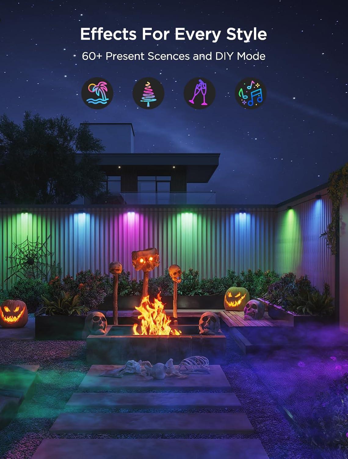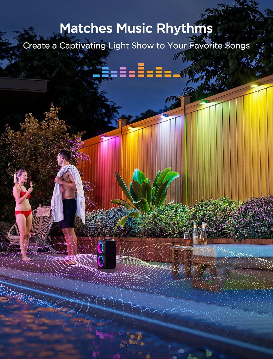Creative DIY Mode & Music Sync Mode: Choose from 60+ scene modes and 16 million colors to illuminate your outdoor area for every occasion. Brighten up your outdoor space with music sync mode, making music and parties more dynamic for outdoor decor.