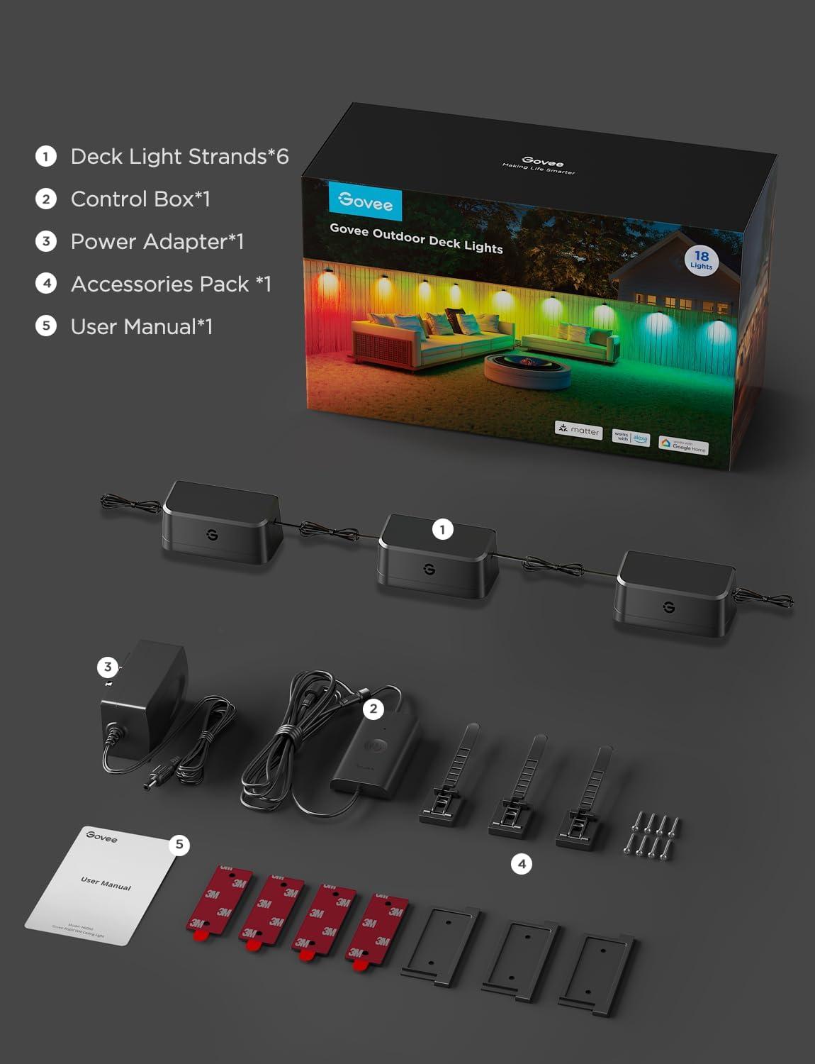 Smart & Versatile Control: Operate Govee Outdoor Deck Lights via app, remote or voice control, plus enjoy third party compatibility via Matter. Offers both Bluetooth and Wi-Fi for flexible control from anywhere. Includes a convenient timer switch for automated lighting management.