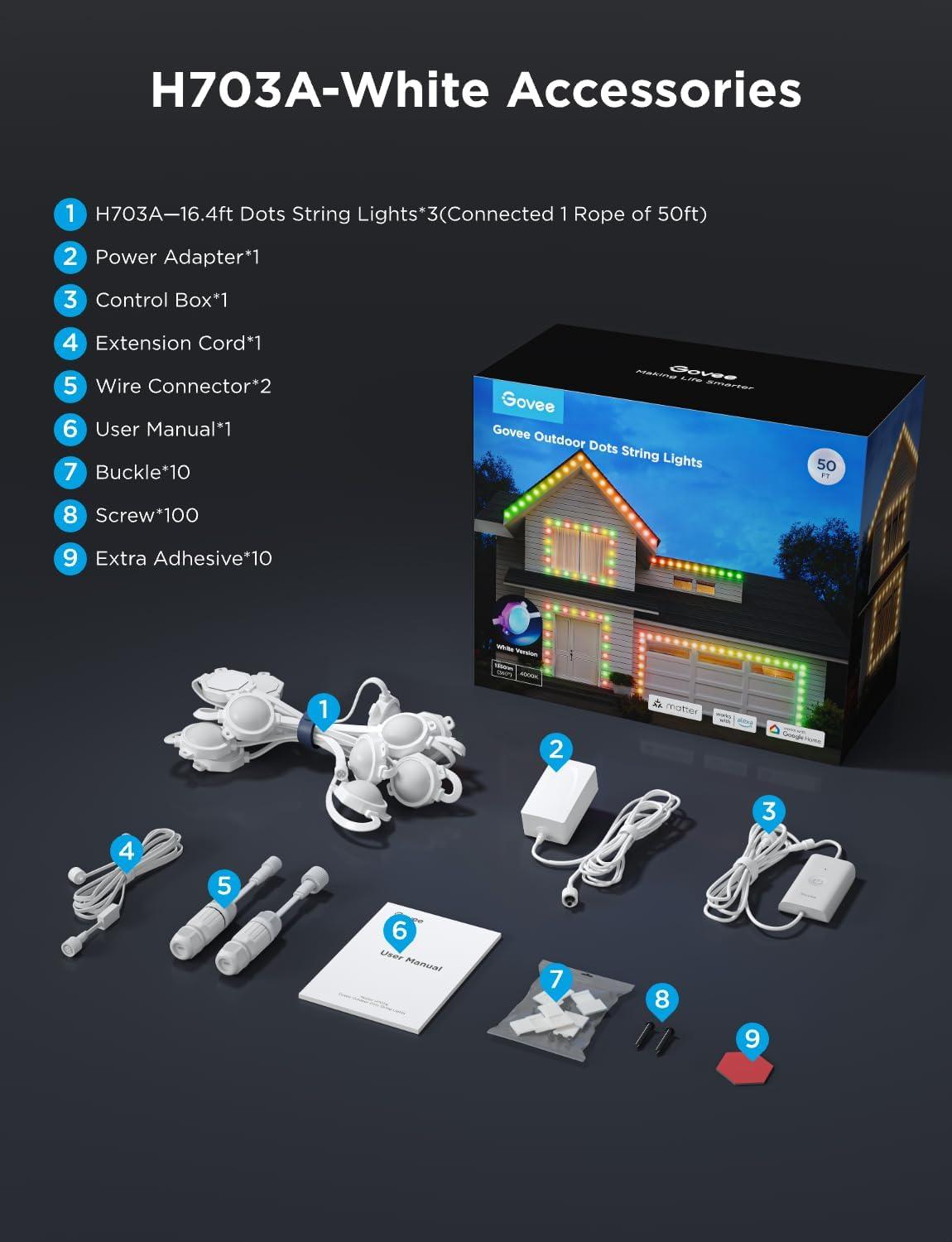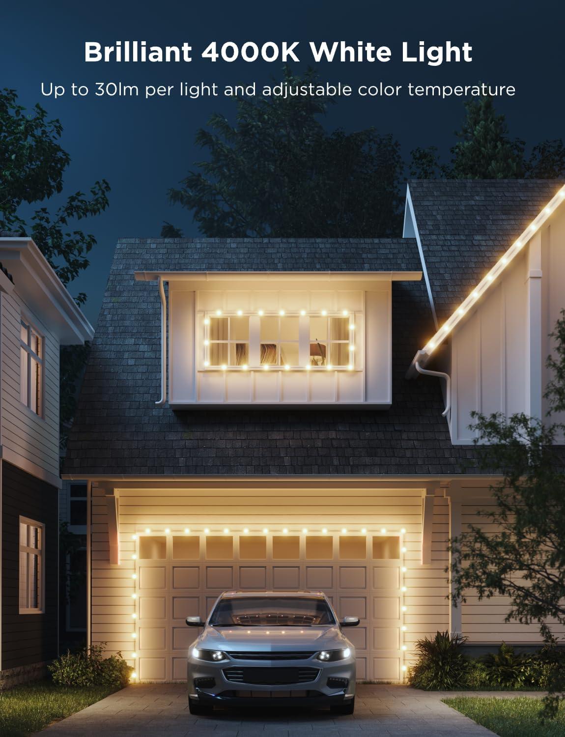 Outdoor Durability: Even in -4℉ to 104℉ cold environments, these IP65 waterproof outdoor lights can function normally. Ideal for winter, lasting up to 25,000 hours, keeping your house and garage beautiful. Control box is IP65, adapter is IP44.