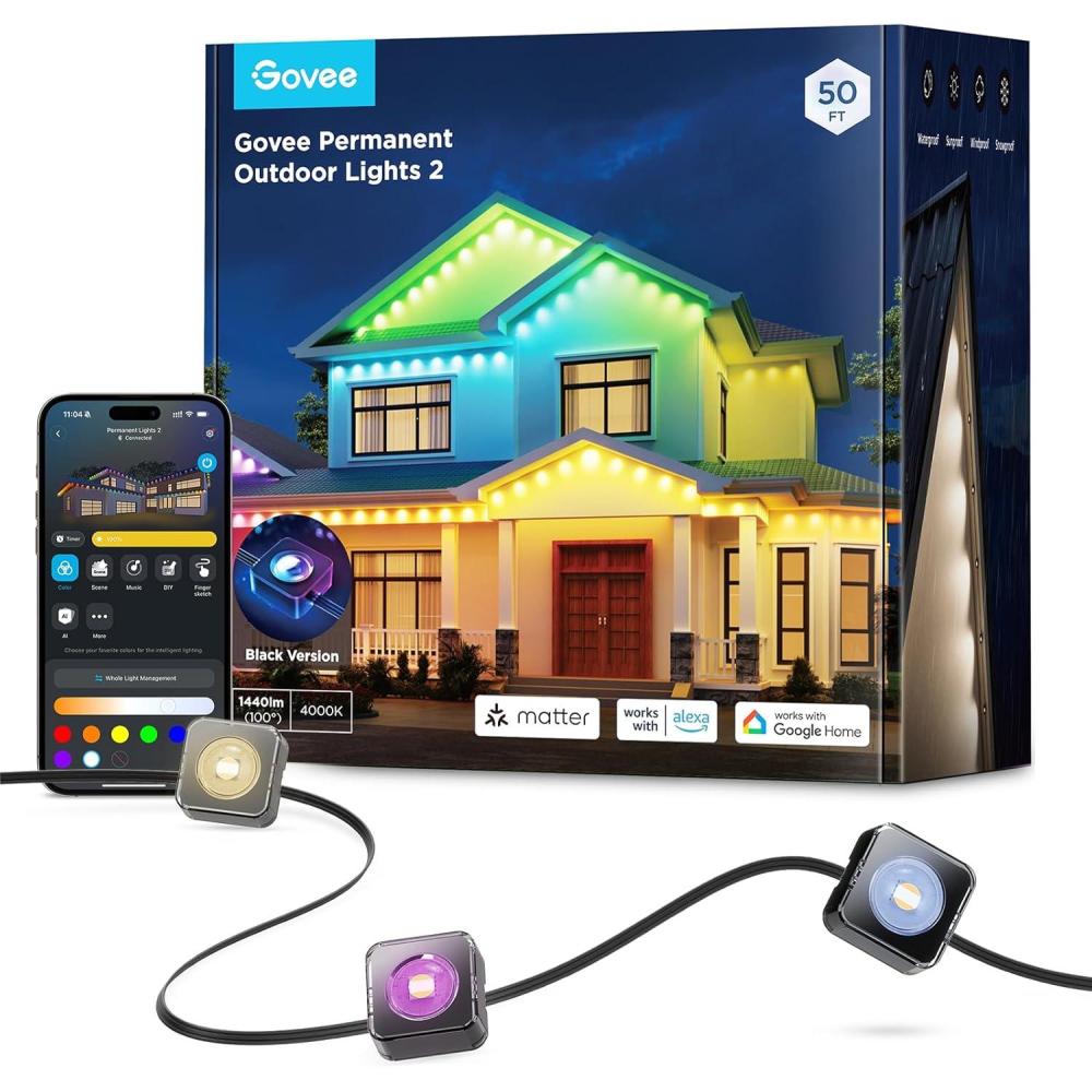 Elaborate RGBIC Lighting: With an upgraded LED design, Govee Permanent Outdoor Lights 2 shows smooth and uniform lighting effects chosen from 16 million accurate color options including 40lm white light, enhancing daily aesthetics and security.