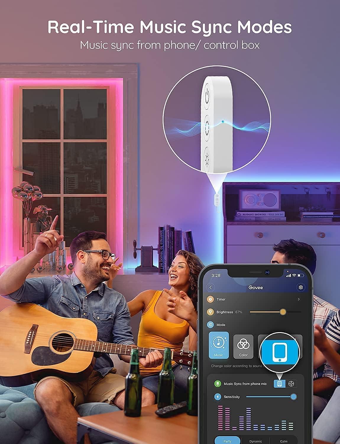 Music Sync: As halloween decorations, a built-in mic allows the smart LED strip lights to sync to any music type. Use our Govee Home app and watch in glee as your led strip lighting dance to your favorite songs.