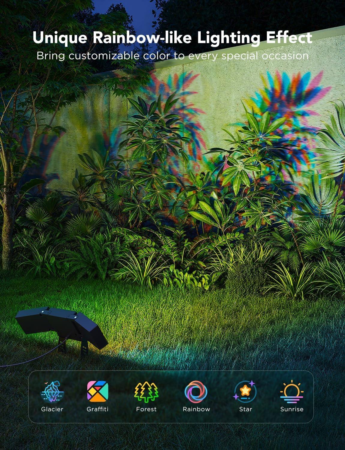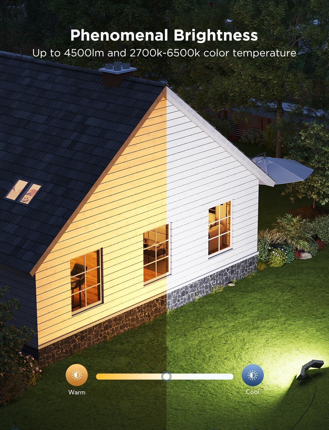 Dynamic RGBICWW Lighting and Unmatched Brightness: Advanced tech for achieving a spectrum of 16 million colors with up to 4500lm of brightness at low power of 48W. Along with warm and cool white lighting, Govee outdoor flood lights offer unprecedented customization and dynamic effects for outdoor decorations, with app-controlled brightness.